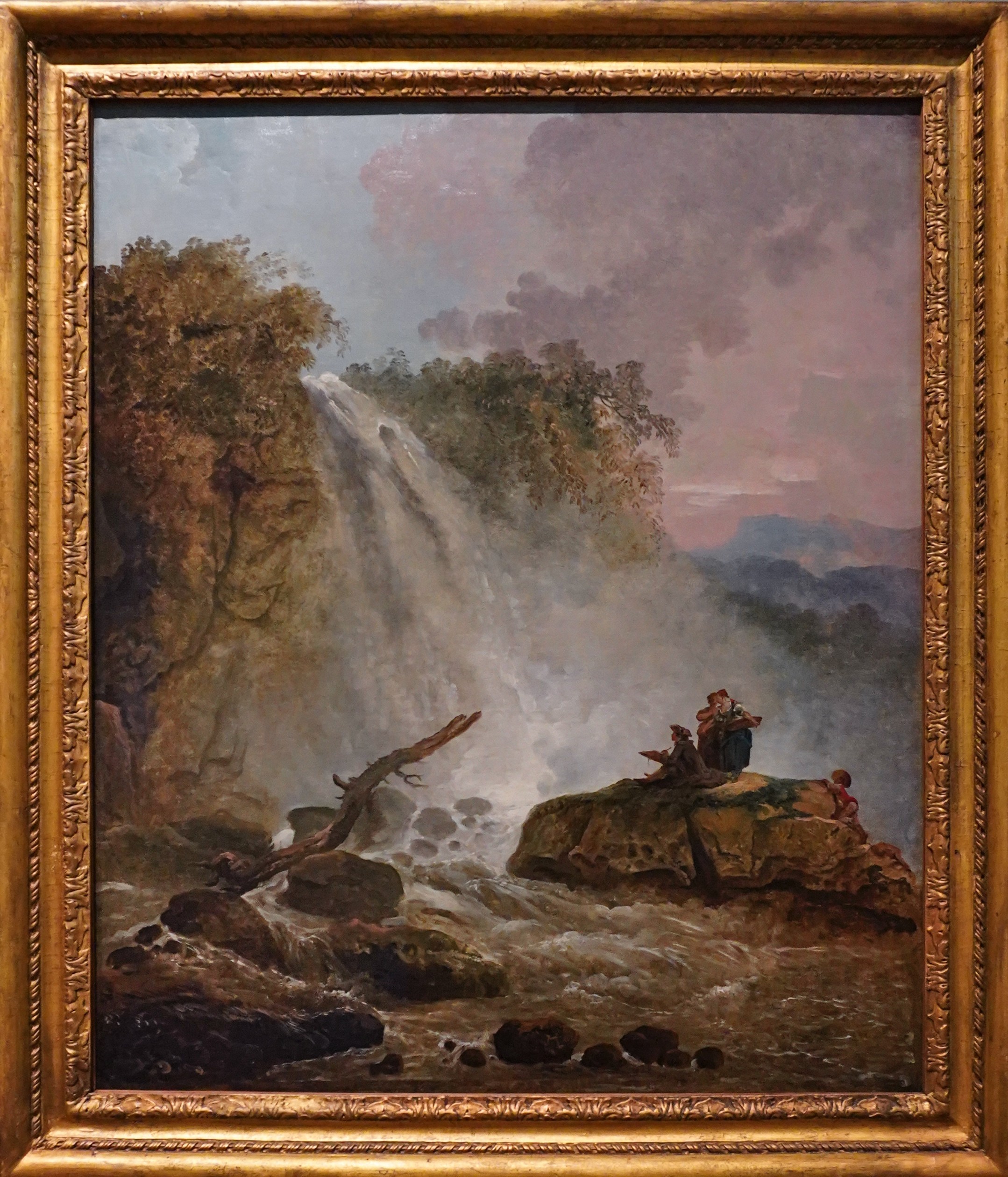 Hubert Robert - Chute d'eau avec artiste dessinant